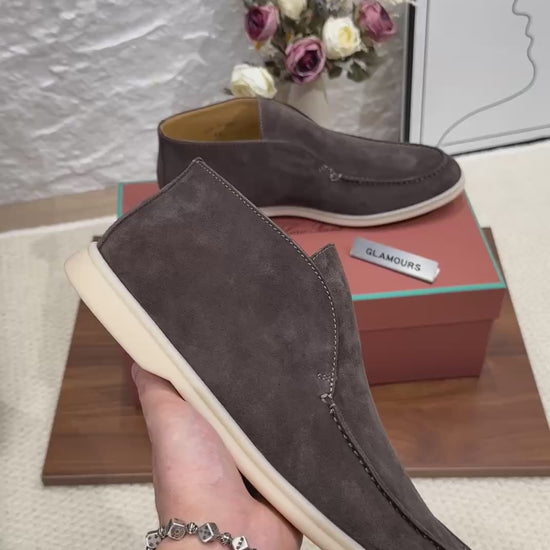 The epitome of quiet luxury. Open Walk blends an ultra soft suede upper with Loro Piana’s signature feather light sole for a glove-like feel and whisper-smooth stride. Clean lines, hand finished detailing, and a refined ankle height deliver effortless elegance from city to resort.