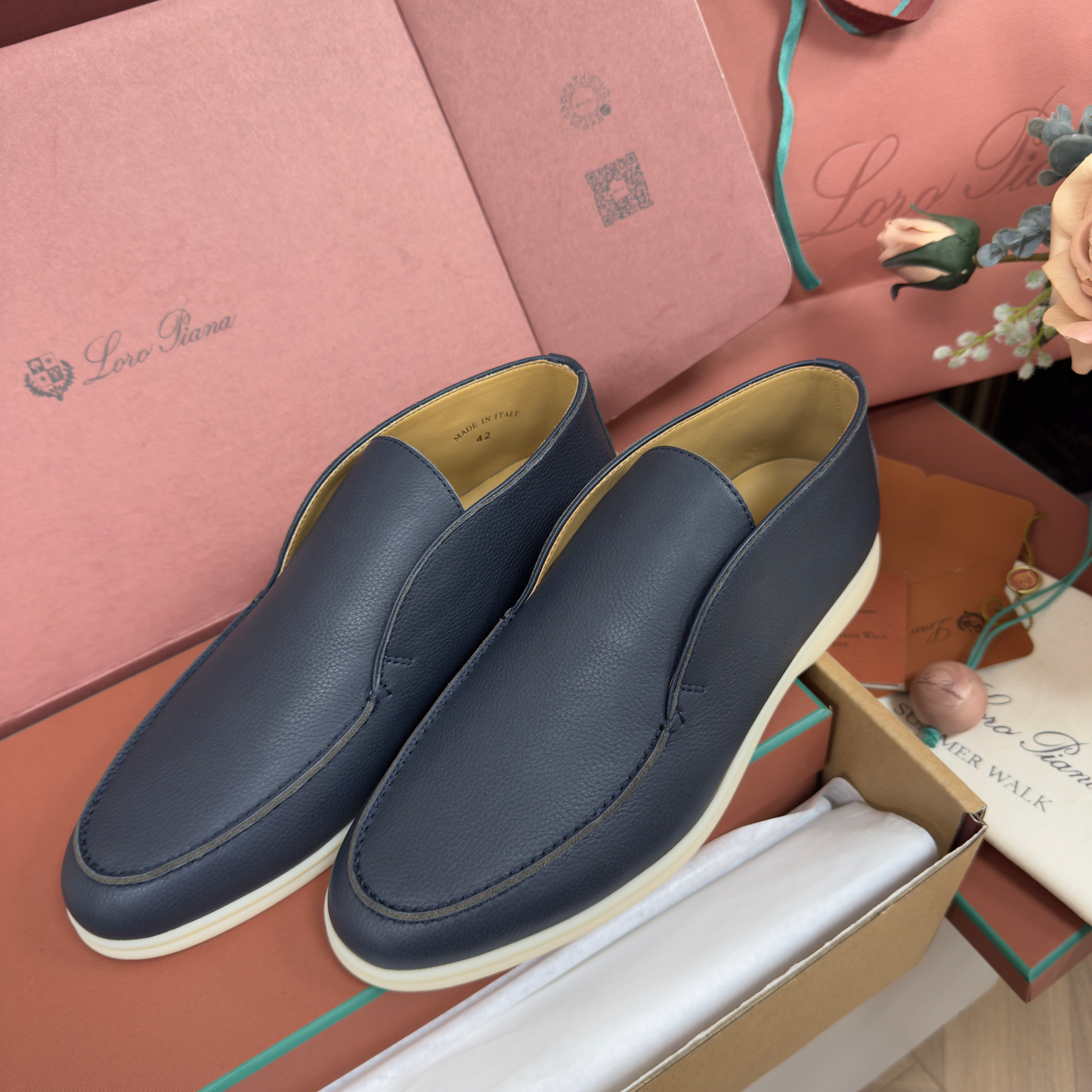 The epitome of quiet luxury. Open Walk blends an ultra soft suede upper with Loro Piana’s signature feather light sole for a glove-like feel and whisper-smooth stride. Clean lines, hand finished detailing, and a refined ankle height deliver effortless elegance from city to resort.